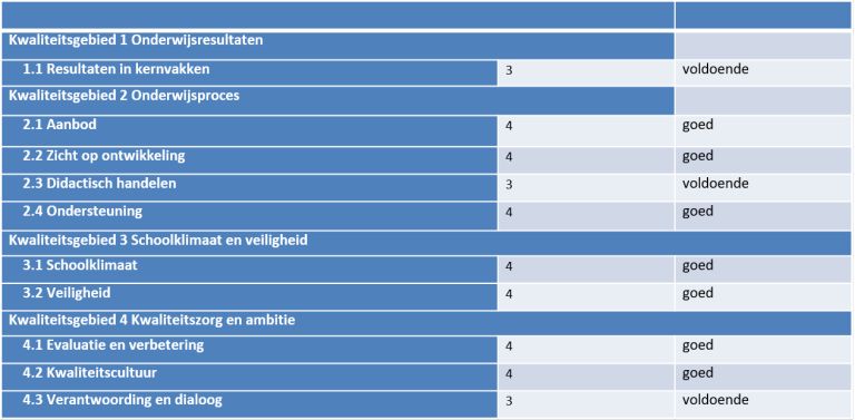 Scores kwaliteitsgebieden (1= zeer zwak, 2= zwak, 3= voldoende, 4= goed)